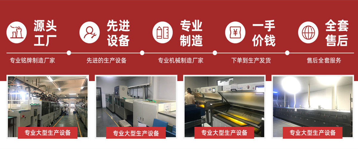 无锡标牌厂有限公司位于美丽的太湖之滨无锡市大窑路,南依苏州。地理位置十分优越。 距沪宁高速公路硕放出口处2公里,西邻312国道,硕放火车站,无锡机场,交通十分便利。我厂是专业生产各种标牌的企业,标牌主要选材有铜、铝、不锈钢、压克力、PC、PVC、PET塑料及不干胶。主要加工工艺有:喷砂阳极氧化、氧化着色、抛光拉丝、刷砂标牌、蚀刻、丝网印刷 、PC、PVC标牌,发光、反光标志;不干胶标贴等。经过10多年的发展,不断开发新产品,在业内首先全面推行ISO9001:2000国际质量管理体系认证,无论在生产、服务等各方面均已建立完善的 控制体系,使我厂在标牌生产中成为具有较强实力和竞争力的企业,信誉和产品质量一直深受广大客户的一致好评和信赖。